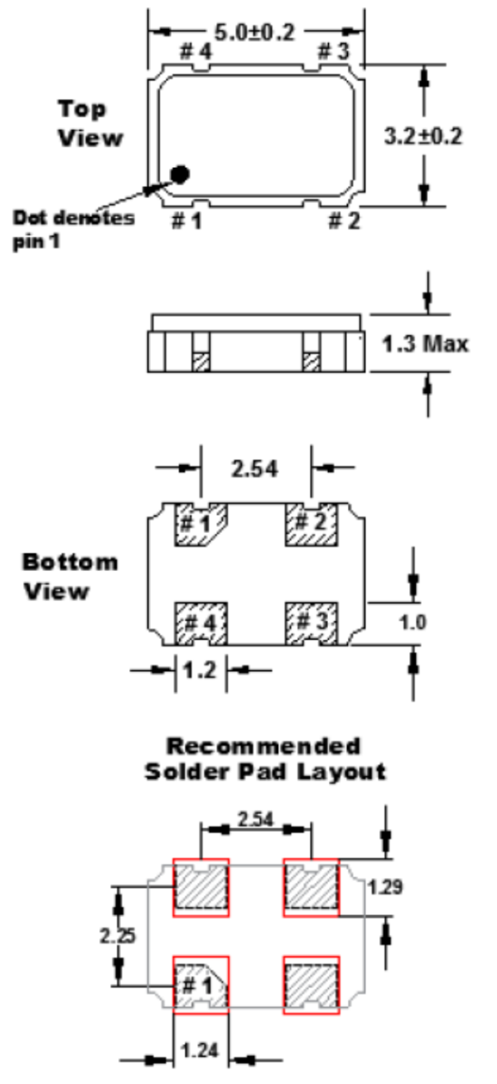 | Size/Dimension尺寸 | 5032mm晶振 | 最小包裝數(shù)MPQ: | 1000 |
