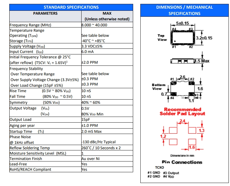 | Type類型 | TCXO | PackageHeight高度 | 1.50mm |